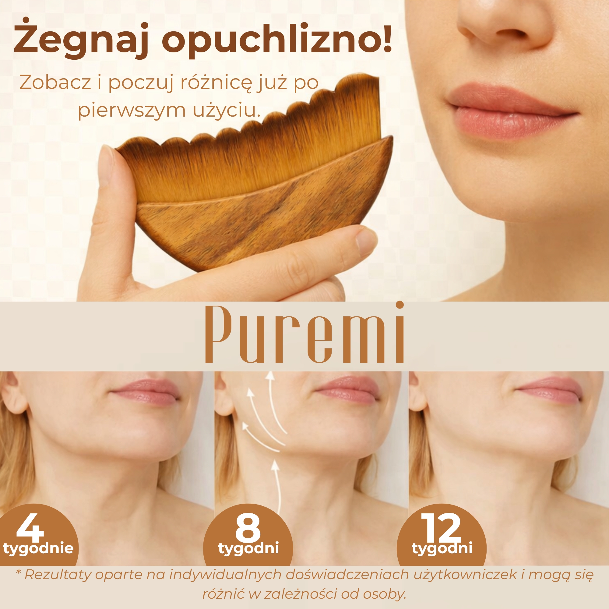 Kobiety na całym świecie zmieniają swoje rytuały dzięki Puremi FaceUp – redukują opuchliznę, modelują kontury twarzy i odzyskują skórę, która wygląda na gładszą, świeższą i bardziej promienną.